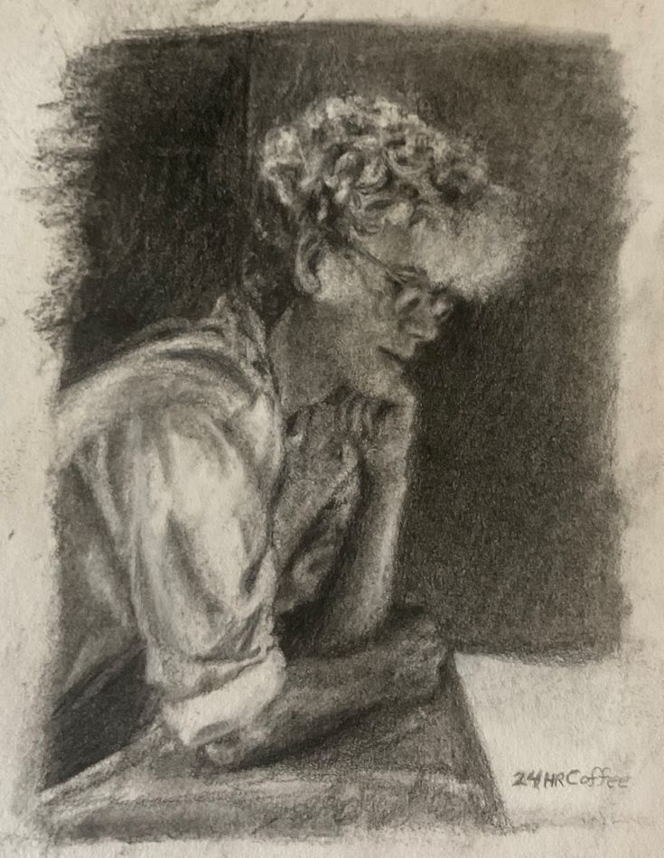 “Going Underground” – Oil on 10″ x 10″ Canvas Panel“Isolation” Oil + Graphite“Yeah!” Charcoal on 9″x12″ Paper“The Sparks Brothers” – Oil Pastel + Paint on 8″ x 10″ Paper“Same as it Ever Was” Graphite on 8″x10″ Paper“Martin Gore” – Pastel on 8″ x 10″ Paper“Fly-By-Wire” – 11″ x 14″ Oil on Glass